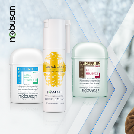 NOBUSAN-Nutrition kombiniert die wichtigsten Spurenelemente in vielen Vitalstoffprodukten mit ergänzenden, gesundheitsoptimierenden Pflanzenextrakten, Vitaminen und Mineralien. Je nach Bedarfsrezeptierung variieren die Dosierungen. So enthält etwa der Beauty-Booster REGENYL Plus besonders viel Eisen, Kupfer und Zink zusammen mit indischem Wassernabel, Ginseng und Biotin. Das „Immun-Schutzschild“ in SANOCARE Plus setzt sich unter anderem aus Zink, Jod und Eisen nebst Extrakten aus vitaminreichen Obst- und Gemüsesorten wie Karotten, Acaibeere, Sanddorn und Grüntee zusammen.