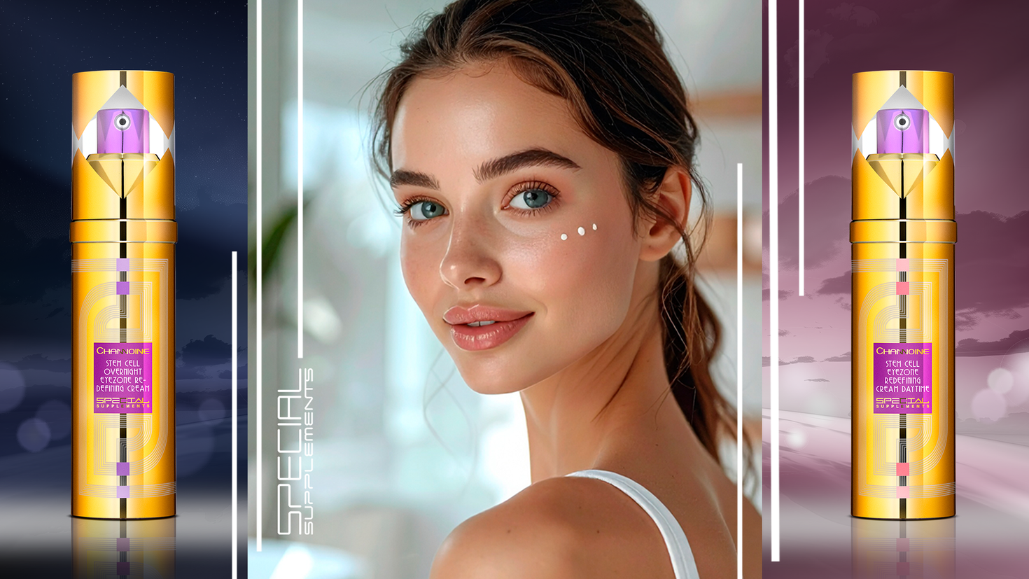 In der SPECIAL SUPPLEMEMTS-Reihe von CHANNOINE haben wir für alle, die bei der Augenpflege alle Register (außer das Skalpell!) ziehen wollen, ein absolutes Pflege-Traumpaar entwickelt: Stem Cell Eyezone Redefining Cream Daytime und Stem Cell Overnight Eyezone Redefining Cream.